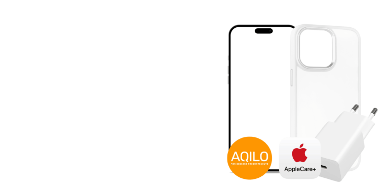 Aqilo deckt Sturz-, Bruch- und Flüssigkeitsschäden sowie Überspannung, Feuer und Materialfehler ab. Der Schutz gilt weltweit und sofort ab Kauf.
